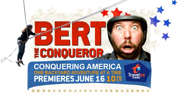 I got a picture of me up on Mt. Washington up in New Hampshire, it’s like of the windiest point in the world. Winds are 75 MPH, and whipping around so bad that no one can even stand. It’s so bad, it’s chaos! My producer, Lani, says to me, “Hey, do you ever get nervous around wind?” And I was like, “What?” “Yea, we might get blown off this mountain.” And all of a sudden I’m thinking, “Shit, I might get blown off a mountain! I’m gonna get blown off a damned mountain today, sonuva…This is not what I want!” I’m gonna have a fun funeral, whoever’s gonna give my eulogy at my funeral’s gonna have an easy day. “Bert did a lot of cool stuff.” And then just put in the sizzle reel for Bert The Conqueror. And everyone will be like “Wow, he had a fun life.”